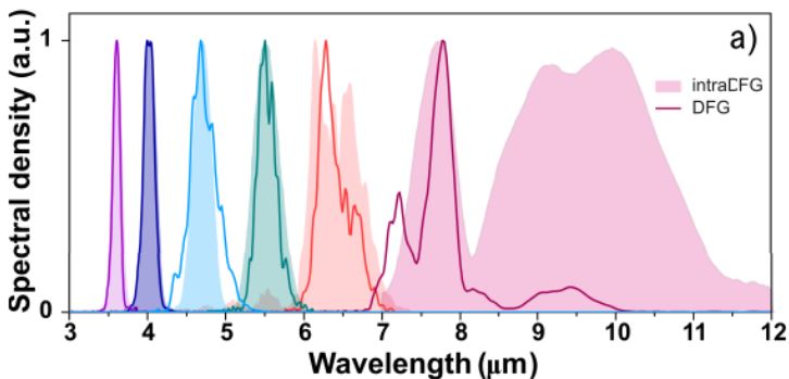 At this stage, we have developed a 100-kHz tunable MIR source, as shown in the graph below.